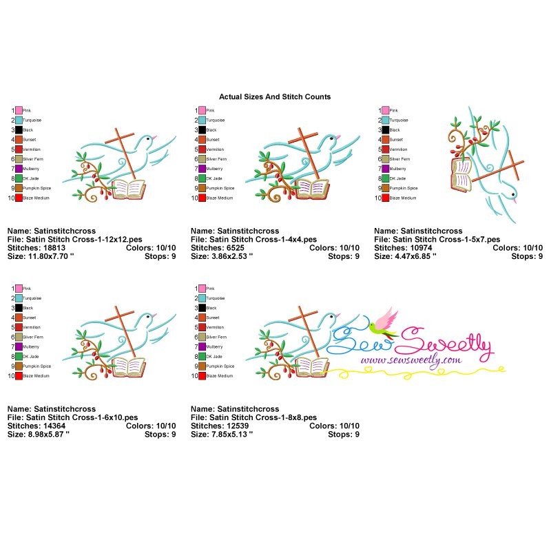 Included File Formats: PES, XXX, VIP, VP3, HUS, JEF, SEW, EXP, PCS, DST.