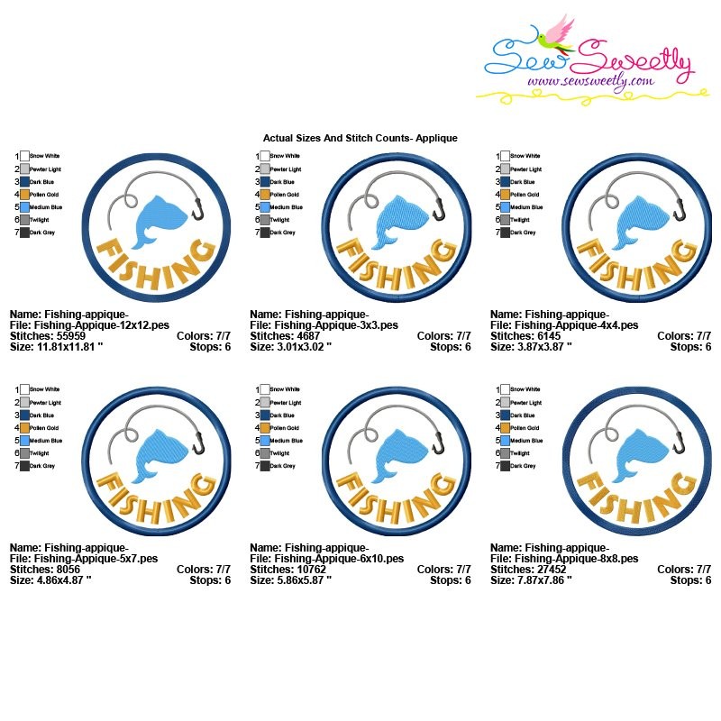 Fishing Badge Machine Embroidery Applique Design Pattern For Jacket back And Caps.