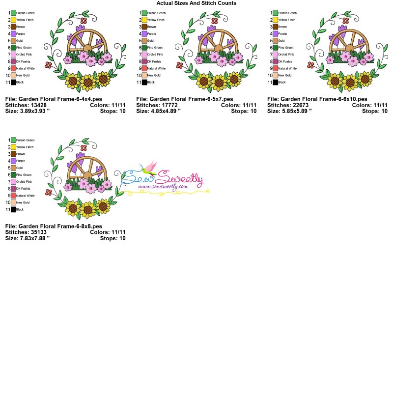 Included Design Sizes Are For 4X4, 5X7, 8x8, and 6X10 Hoop.